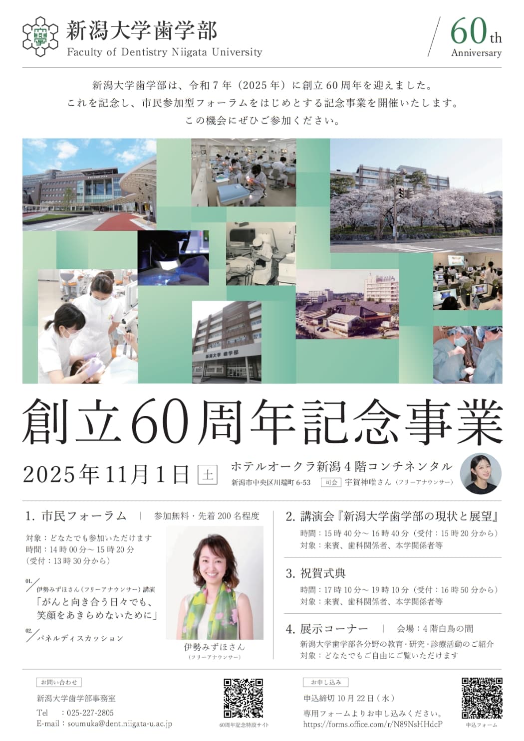 新潟大学歯学部の創立60周年を記念し、市民参加型フォーラムをはじめとする記念事業を開催いたします。