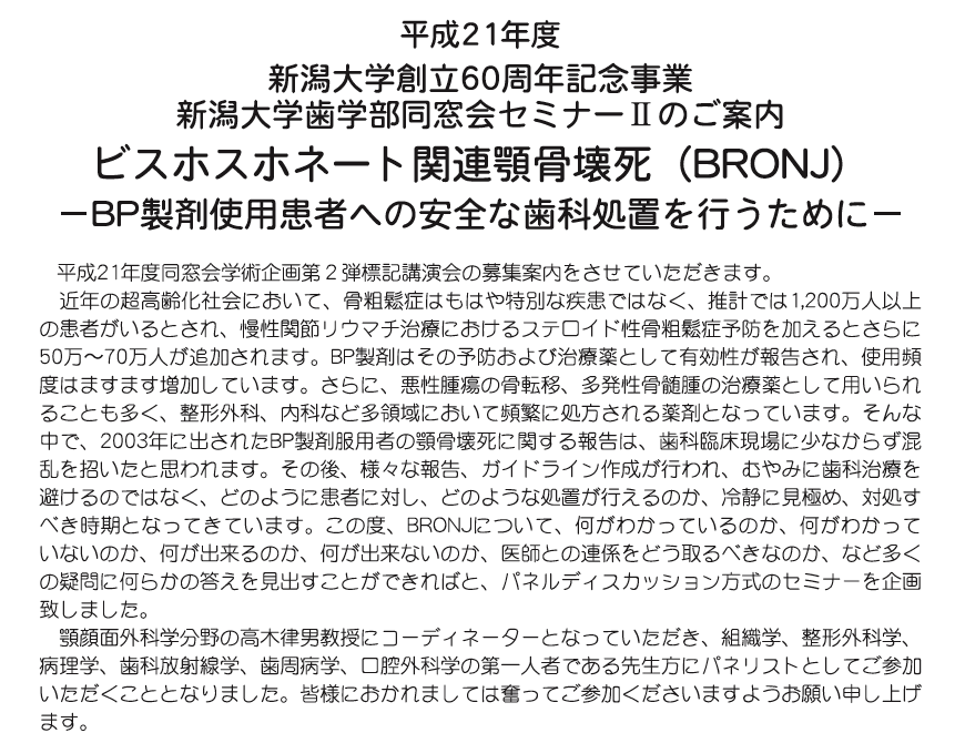 平成22年2月7日(日) 10:00〜15:00 会場:新潟大学歯学部 (予定)