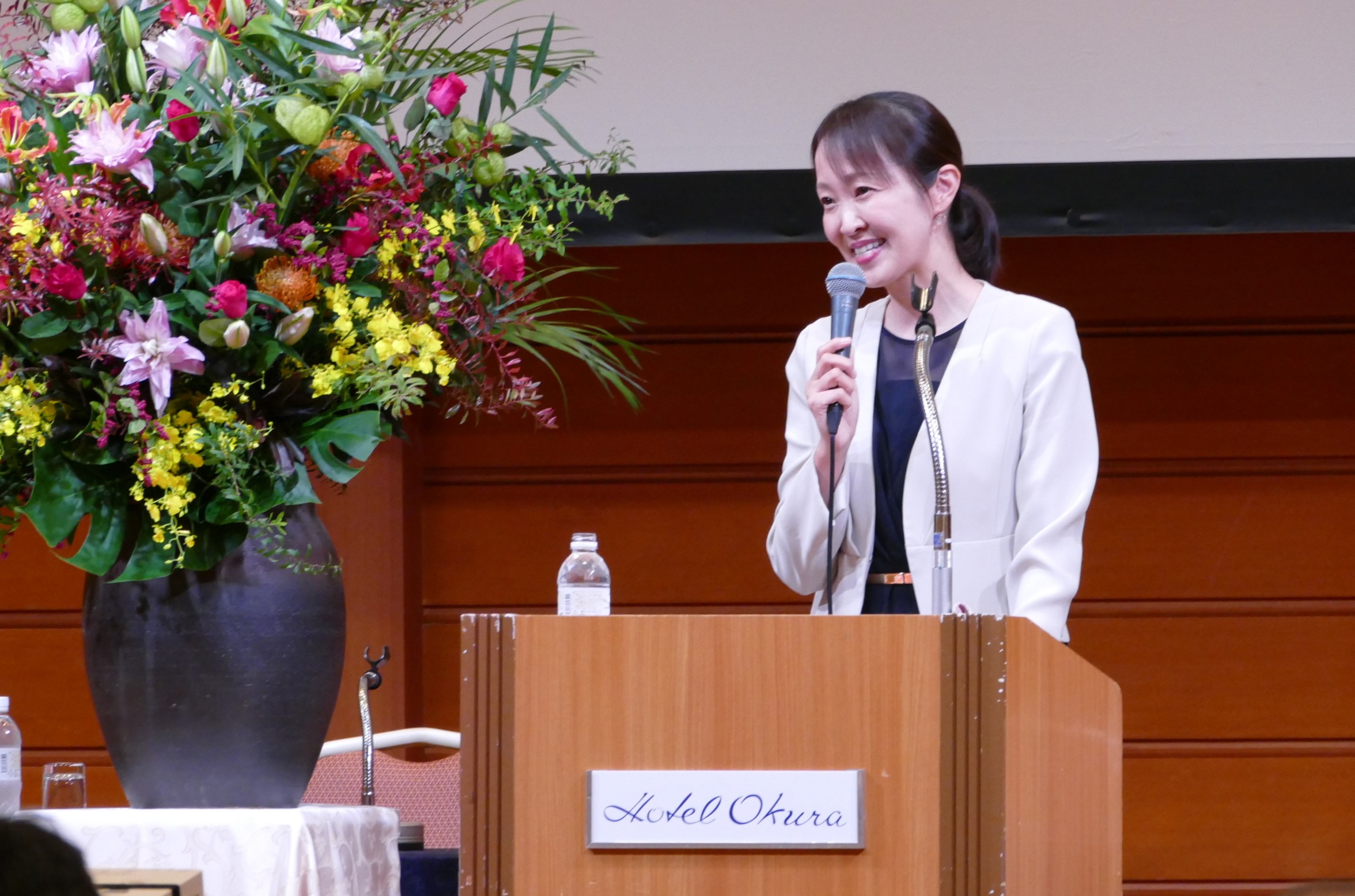 講演では、フリーアナウンサーの伊勢みずほ様より、「がんと向き合う日々でも,笑顔をあきらめないために」と題して、ご自身の闘病経験をもとにお話をいただきました。