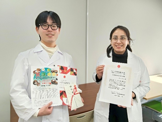 本大会には一次審査を通過した12チームが出場し、歯学科3年の大川原浩将さん(歯科薬理学分野)と医歯学総合研究科3年のステファニー・カスティーヨさん(口腔生化学分野)によるチーム「サケマッシュ」が、見事『特別賞』を受賞しました。
